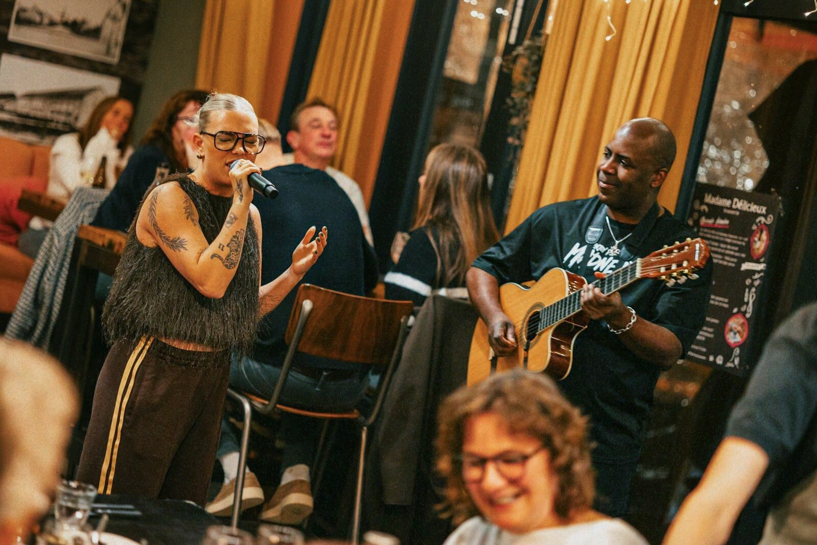 Het liefst treed ik op samen met mijn gitarist. We zijn goed op elkaar ingespeeld en creëren samen een intieme en toch krachtige sound. Geen poespas, geen overdaad, maar echte live muziek die past bij iedere sfeer.